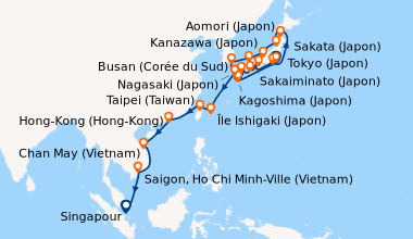 Pour les escales au Vietnam, en Chine et en Indonésie, un visa de transit, dont s'occupent en général les compagnies de croisière, est obligatoire et sera facturé dans le cadre de vos dépenses à bord.