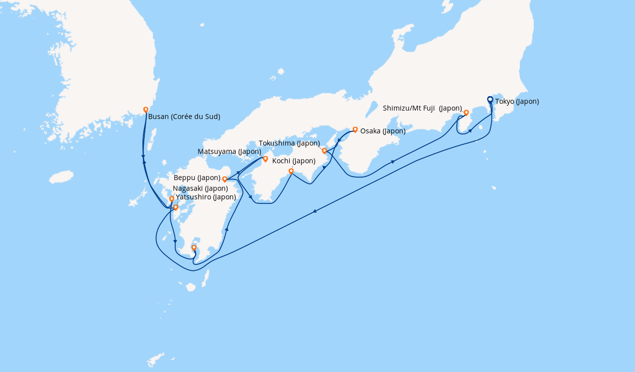 Une taxe locale japonaise (env. 1 000 ¥/passager) peut être appliquée pour les croisières faisant escale au Japon. Elle peut être facturée avant départ ou prélevée à bord selon la compagnie.