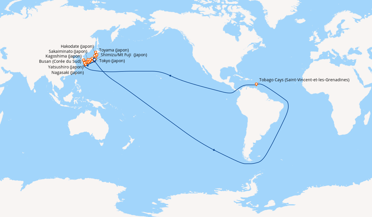Une taxe locale japonaise (env. 1 000 ¥/passager) peut être appliquée pour les croisières faisant escale au Japon. Elle peut être facturée avant départ ou prélevée à bord selon la compagnie.