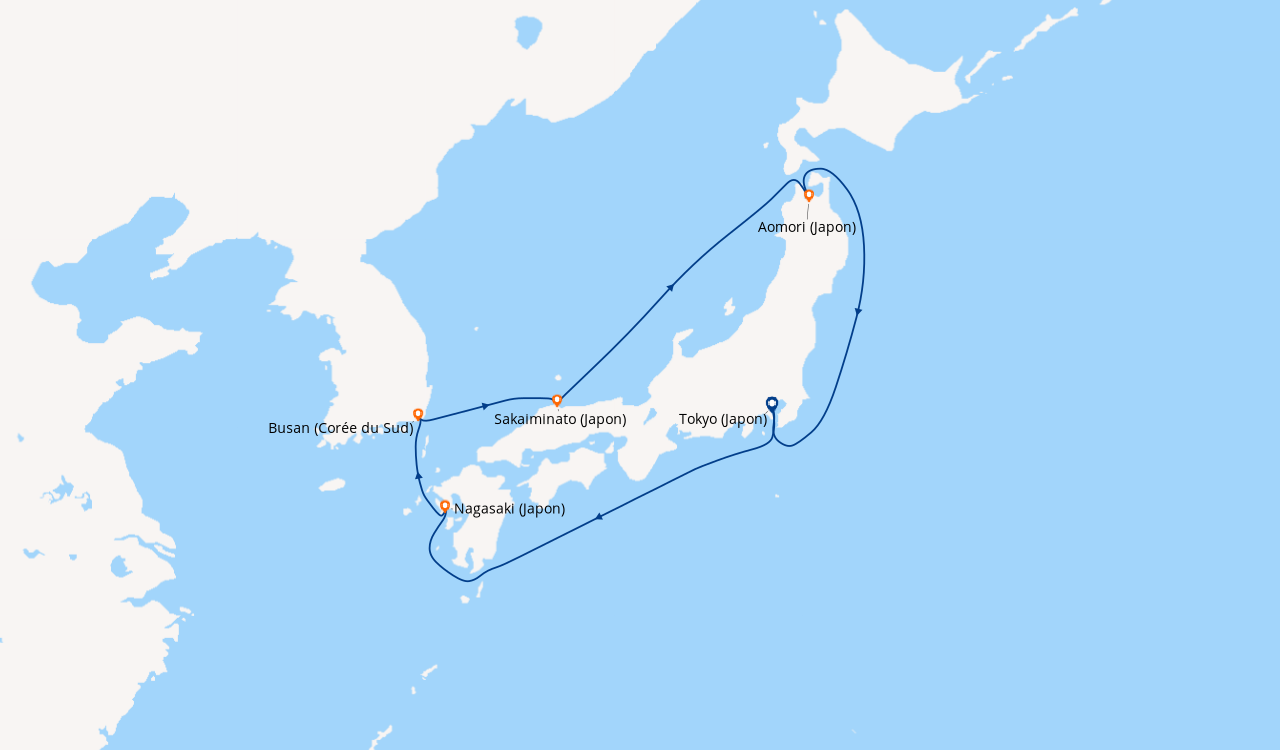 Une taxe locale japonaise (env. 1 000 ¥/passager) peut être appliquée pour les croisières faisant escale au Japon. Elle peut être facturée avant départ ou prélevée à bord selon la compagnie.