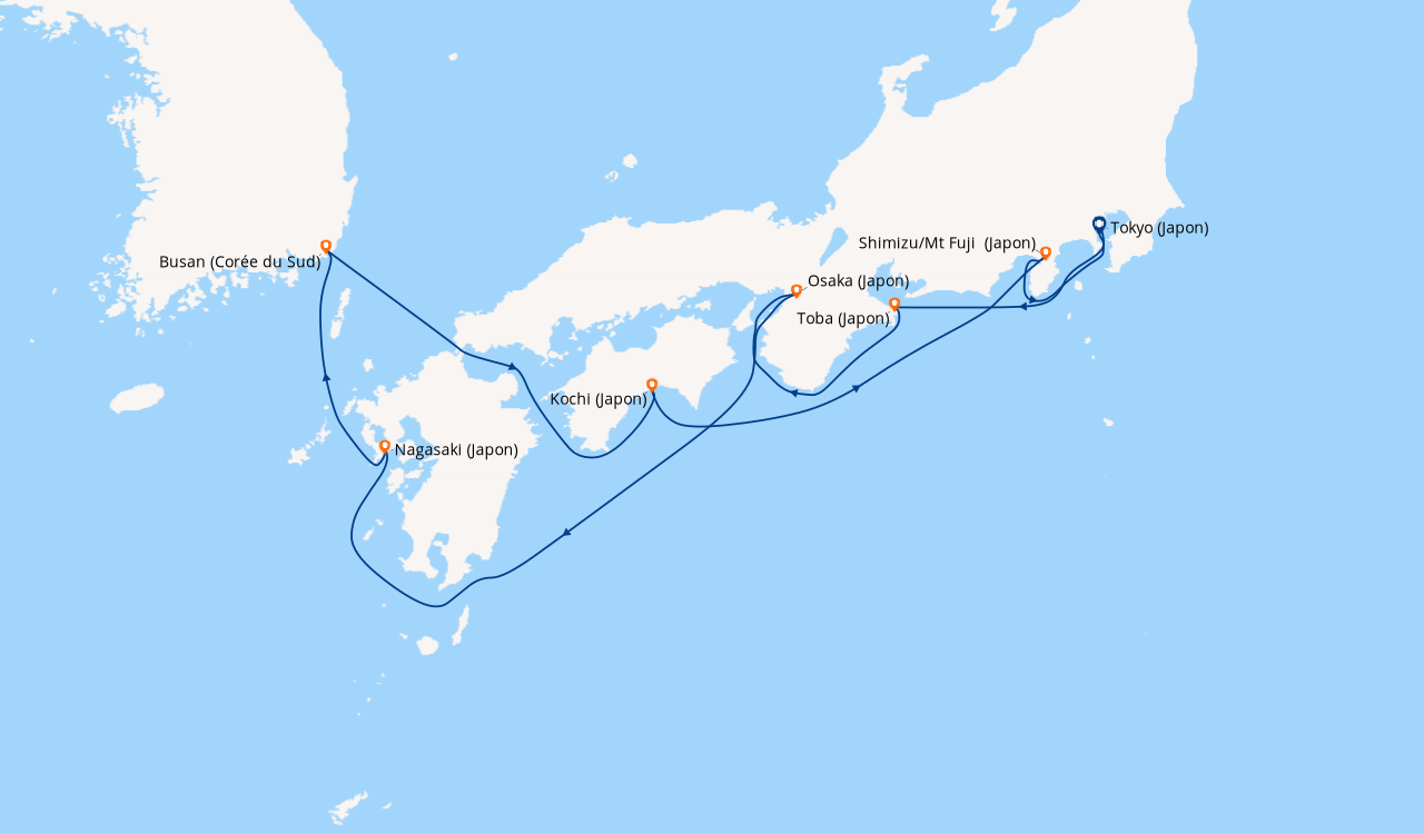 Une taxe locale japonaise (env. 1 000 ¥/passager) peut être appliquée pour les croisières faisant escale au Japon. Elle peut être facturée avant départ ou prélevée à bord selon la compagnie.