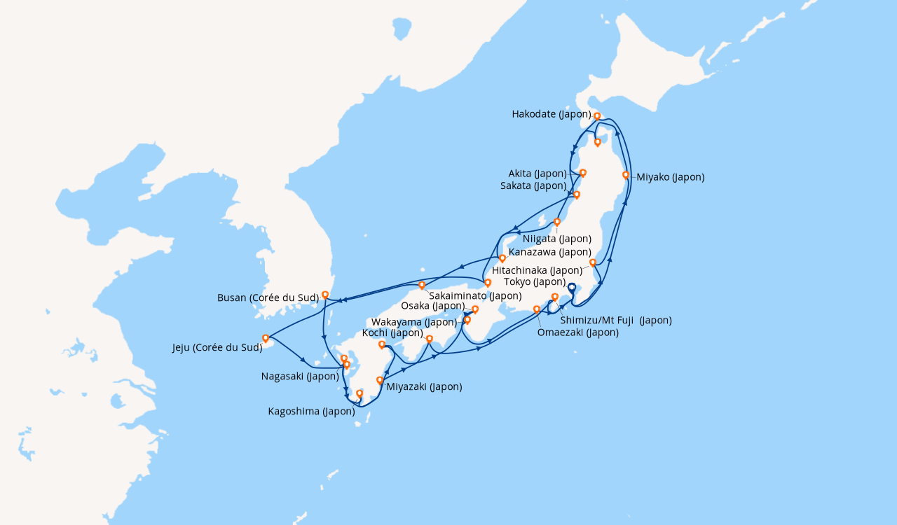 Une taxe locale japonaise (env. 1 000 ¥/passager) peut être appliquée pour les croisières faisant escale au Japon. Elle peut être facturée avant départ ou prélevée à bord selon la compagnie.