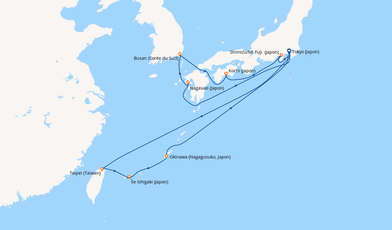 Une taxe locale japonaise (env. 1 000 ¥/passager) peut être appliquée pour les croisières faisant escale au Japon. Elle peut être facturée avant départ ou prélevée à bord selon la compagnie.