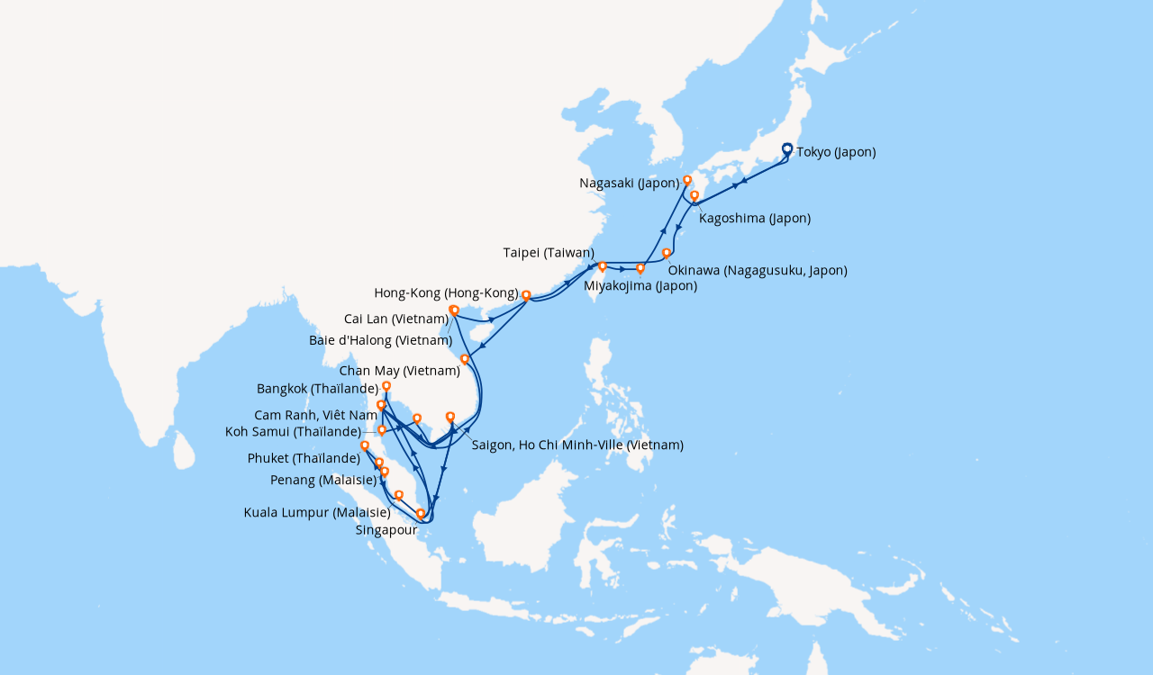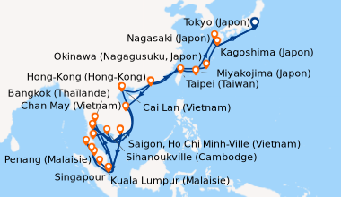 Pour les escales au Vietnam, en Chine et en Indonésie, un visa de transit, dont s'occupent en général les compagnies de croisière, est obligatoire et sera facturé dans le cadre de vos dépenses à bord.