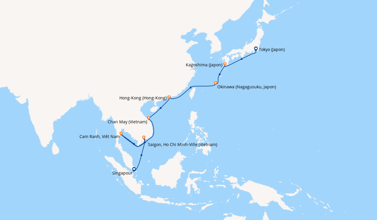 Une taxe locale japonaise (env. 1 000 ¥/passager) peut être appliquée pour les croisières faisant escale au Japon. Elle peut être facturée avant départ ou prélevée à bord selon la compagnie.