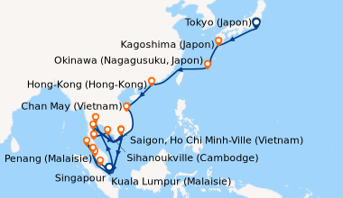 Pour les escales au Vietnam, en Chine et en Indonésie, un visa de transit, dont s'occupent en général les compagnies de croisière, est obligatoire et sera facturé dans le cadre de vos dépenses à bord.