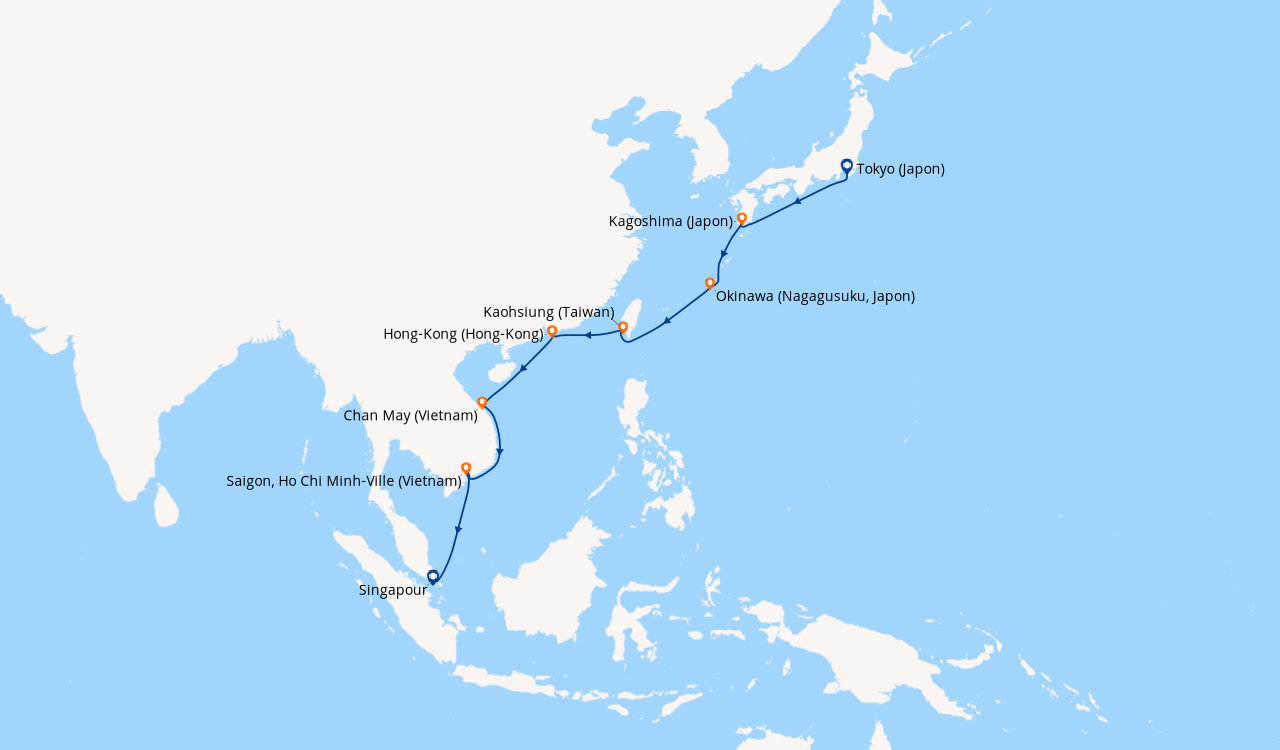 Pour les escales au Vietnam, en Chine et en Indonésie, un visa de transit, dont s'occupent en général les compagnies de croisière, est obligatoire et sera facturé dans le cadre de vos dépenses à bord.