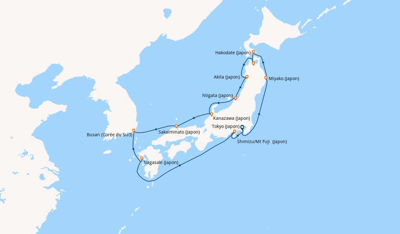 Une taxe locale japonaise (env. 1 000 ¥/passager) peut être appliquée pour les croisières faisant escale au Japon. Elle peut être facturée avant départ ou prélevée à bord selon la compagnie.