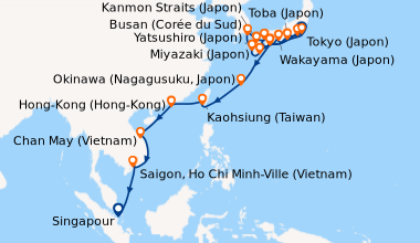 Pour les escales au Vietnam, en Chine et en Indonésie, un visa de transit, dont s'occupent en général les compagnies de croisière, est obligatoire et sera facturé dans le cadre de vos dépenses à bord.