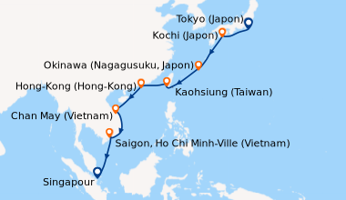 Pour les escales au Vietnam, en Chine et en Indonésie, un visa de transit, dont s'occupent en général les compagnies de croisière, est obligatoire et sera facturé dans le cadre de vos dépenses à bord.
