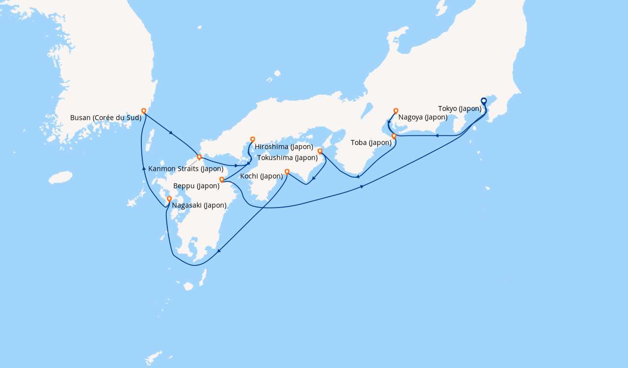 Une taxe locale japonaise (env. 1 000 ¥/passager) peut être appliquée pour les croisières faisant escale au Japon. Elle peut être facturée avant départ ou prélevée à bord selon la compagnie.