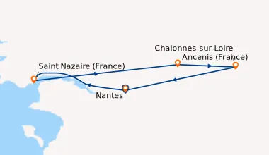 Navire à taille humaine, une très bonne chose quand on ne supporte plus les 4000 passagers sur costa et les embarquements qui durent 2h.. au total 40 passagers pas plus, cabine calme mais je crois que je n'ai pas eu de voisins à ma droite ni à ma gauche. La corcniche dangevine magnifique, les promenades sur les berges se sont bien passées. Quartiers d'Angers à privilégier si vous ne devez faire q'une seule escale !