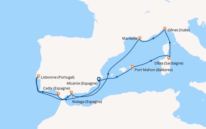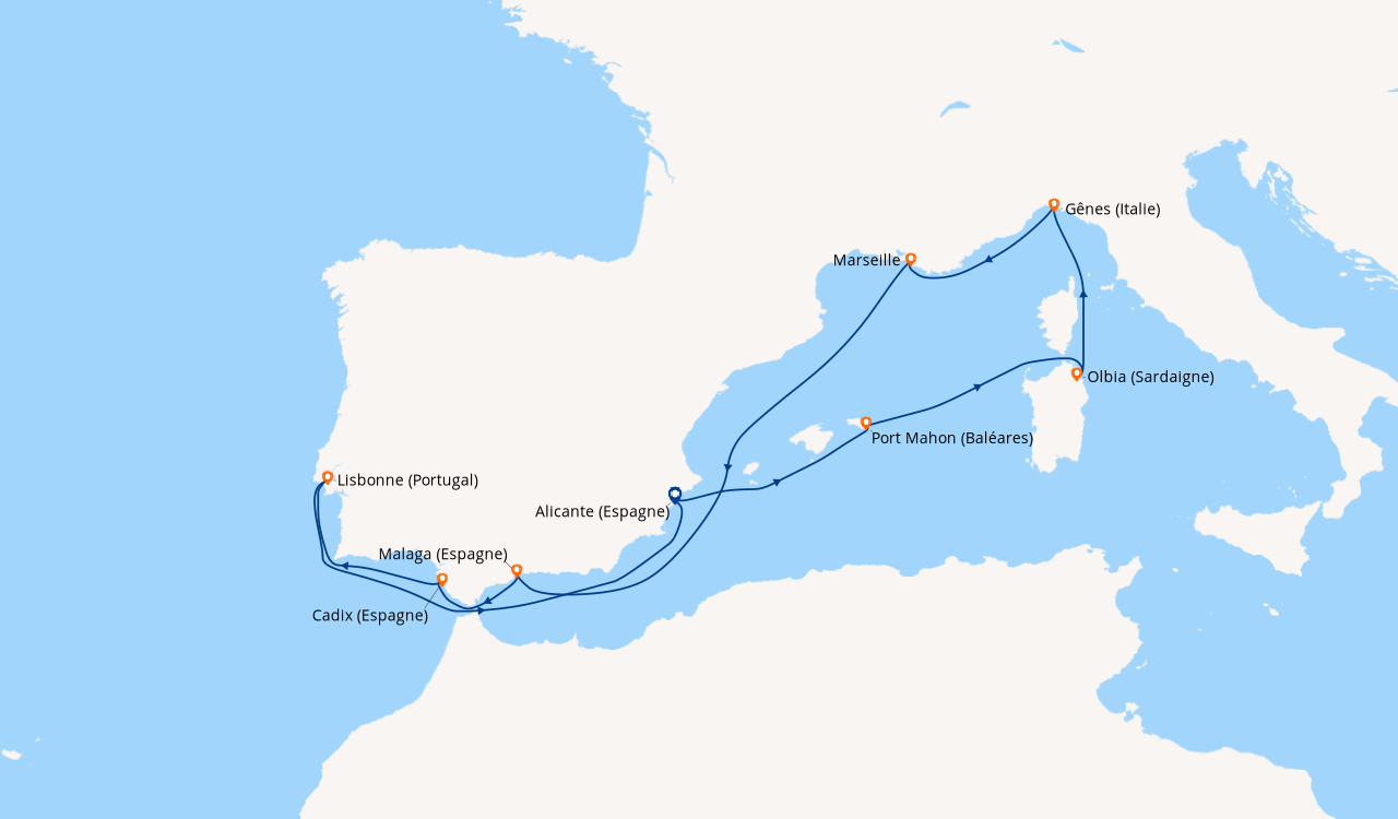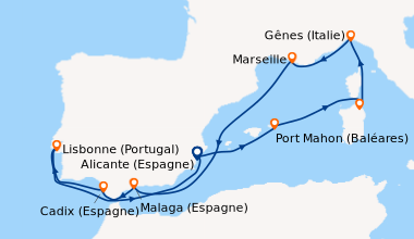 Croisiere en Septembre à destination de la méditerranée, embarquement à Gêne. A mon arrivée au point d’embarquement, je découvre un navire élégant, de taille moyenne. Une fois à bord, l’intérieur affiche un style d’inspiration Art Déco avec des décors de formes géométriques et des couleurs attrayantes. Ma cabine, est équipée de tout le confort moderne, petite, bien agencée, avec des couleurs vitaminées. Grâce à l’équipage, au personnel, à l’équipe d’animations formidables, mon séjour prend rapidement les couleurs de la bonhommie italienne, marqué chaque jour par la bonne compagnie, la bonne cuisine avec son festival de menus rafinés, ses diverses animations, du lever au coucher. Juste un reproche concernant la loi anti-tabac qui prévoit des zones fumeurs parmi des zones non-fumeurs alors que des lieux spécifiques isolés seraient moins dérangeants.