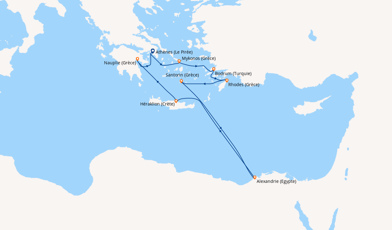 Si embarquement en Egypte, et si les hôtes ne sont pas en mesure de se procurer le visa à entrées multiples en ligne avant le départ, ils peuvent acquérir la première vignette de visa d'entrée directement à l'aéroport d'Hurghada dans les bureaux du gouvernement, en payant l'équivalent de USD 25,00. La deuxième vignette de visa d'entrée requise à la fin de la croisière, lorsque le navire retourne en Égypte, doit être achetée directement à bord au prix de 29 euros. Cette solution alternative n'est pas valable pour les nationalités nécessitant un visa pré-émis par une ambassade ou un consulat.