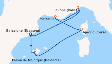 La mediterranée en juillet de barcelone Nous avons choisi Costa en raison de son prix abordable et de sa destination ensoleillée. L’embarquement à Barcelone se fait en un temps record (15 minutes). La cabine extérieure que nous avons choisie est grande et bien aménagée. Nous étions quatre, alors par économie, nous avons opté pour le forfait boissons, au final, nous avons bien fait.Le navire est spacieux et sa décoration moderne. Si vous souhaitez du homard, ne cherchez pas, Costa n’offre pas une restauration gastronomique, mais c’est acceptable, le service est rapide, efficace. Nous avons diné au MDR tous les soirs et au buffet sur les ponts 9/10 le reste du temps. Au niveau de l'animation, les spectacles sont de bons niveaux au theatre. Pour de moments de detente, il y a de confortables fauteuils au piano bar avec de la douce musique d’ambiance.Nous avons fait une excursion avec la compagnie mais nous l’avons trouvée chère. Quelques passagers nous ont confié qu'ils avaient fait des économies en prenant leurs excursions à terre. Cette croisière est recommandée pour les familles à tous points de vue