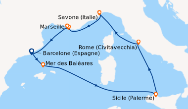 Pour notre 1 ère croisière nous avons passé une semaine extraordinaire a refaire sans problème. Le petit bémol est que pour notre croisière pour l escale au Vatican nous n avons pas pu le visiter car tout était fermé cause arrivée du Pape. Et toute les explications sur le bateau le français était très très rare donc pas évident de savoir se qu ils y avait sur le bateau