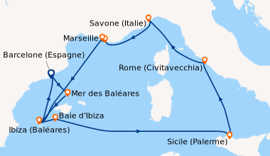 Pour notre 1 ère croisière nous avons passé une semaine extraordinaire a refaire sans problème. Le petit bémol est que pour notre croisière pour l escale au Vatican nous n avons pas pu le visiter car tout était fermé cause arrivée du Pape. Et toute les explications sur le bateau le français était très très rare donc pas évident de savoir se qu ils y avait sur le bateau