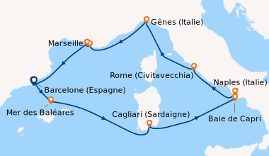 Pour notre 1 ère croisière nous avons passé une semaine extraordinaire a refaire sans problème. Le petit bémol est que pour notre croisière pour l escale au Vatican nous n avons pas pu le visiter car tout était fermé cause arrivée du Pape. Et toute les explications sur le bateau le français était très très rare donc pas évident de savoir se qu ils y avait sur le bateau