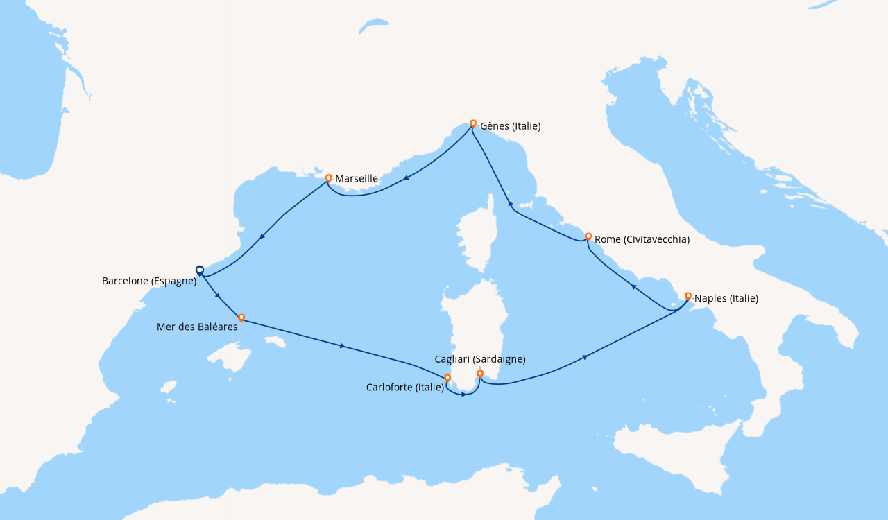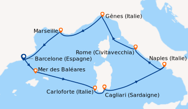 Pour notre 1 ère croisière nous avons passé une semaine extraordinaire a refaire sans problème. Le petit bémol est que pour notre croisière pour l escale au Vatican nous n avons pas pu le visiter car tout était fermé cause arrivée du Pape. Et toute les explications sur le bateau le français était très très rare donc pas évident de savoir se qu ils y avait sur le bateau