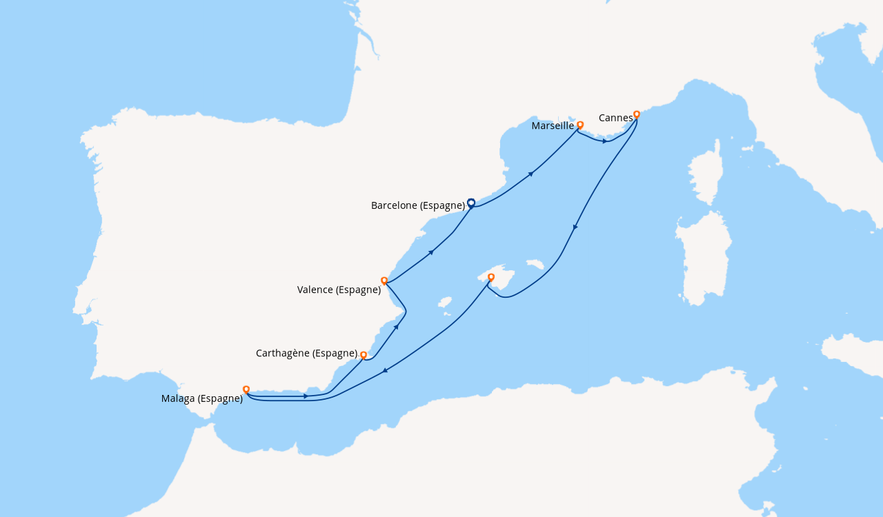 CROISIÈRE BARCELONE (ESPAGNE), MARSEILLE, CANNES, EN ME...
