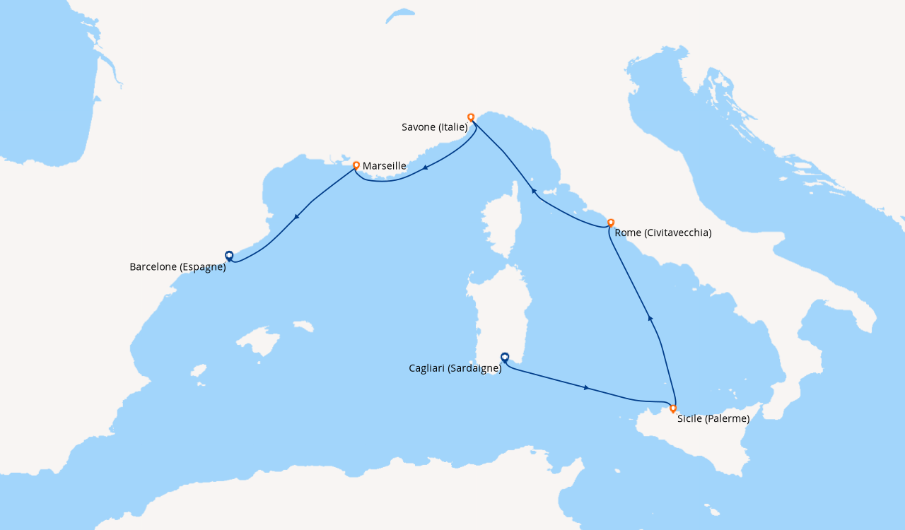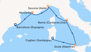 Pour notre 1 ère croisière nous avons passé une semaine extraordinaire a refaire sans problème. Le petit bémol est que pour notre croisière pour l escale au Vatican nous n avons pas pu le visiter car tout était fermé cause arrivée du Pape. Et toute les explications sur le bateau le français était très très rare donc pas évident de savoir se qu ils y avait sur le bateau