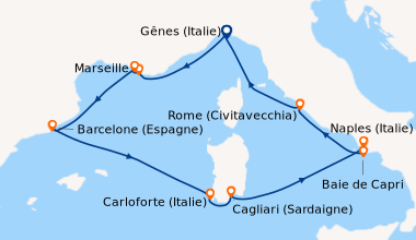 Pour notre 1 ère croisière nous avons passé une semaine extraordinaire a refaire sans problème. Le petit bémol est que pour notre croisière pour l escale au Vatican nous n avons pas pu le visiter car tout était fermé cause arrivée du Pape. Et toute les explications sur le bateau le français était très très rare donc pas évident de savoir se qu ils y avait sur le bateau