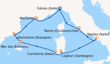 Pour notre 1 ère croisière nous avons passé une semaine extraordinaire a refaire sans problème. Le petit bémol est que pour notre croisière pour l escale au Vatican nous n avons pas pu le visiter car tout était fermé cause arrivée du Pape. Et toute les explications sur le bateau le français était très très rare donc pas évident de savoir se qu ils y avait sur le bateau