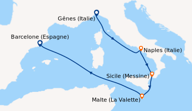 Deux semaines, déjà que je suis revenue d’une croisière de rêve en Méditerranée sur le Magnifica. Itinéraire : Gênes, Naples, Palerme, Tunis Barcelone. J’ai du mal à me remettre dans le bain de la dure réalité du quotidien. Avant de partir, comme la plupart d’entre vous, j’ai consulté les forums, histoire de trouver des infos. Mais c’est quand même mieux de tester par soi-même. N’hésitez pas à me contacter si vous désirez quelques renseignements. Je serai ravie de vous aider.