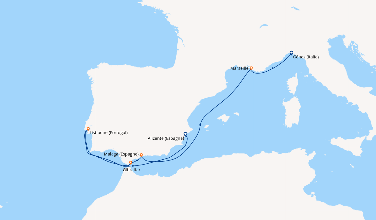 Croisiere en Septembre à destination de la méditerranée, embarquement à Gêne. A mon arrivée au point d’embarquement, je découvre un navire élégant, de taille moyenne. Une fois à bord, l’intérieur affiche un style d’inspiration Art Déco avec des décors de formes géométriques et des couleurs attrayantes. Ma cabine, est équipée de tout le confort moderne, petite, bien agencée, avec des couleurs vitaminées. Grâce à l’équipage, au personnel, à l’équipe d’animations formidables, mon séjour prend rapidement les couleurs de la bonhommie italienne, marqué chaque jour par la bonne compagnie, la bonne cuisine avec son festival de menus rafinés, ses diverses animations, du lever au coucher. Juste un reproche concernant la loi anti-tabac qui prévoit des zones fumeurs parmi des zones non-fumeurs alors que des lieux spécifiques isolés seraient moins dérangeants.