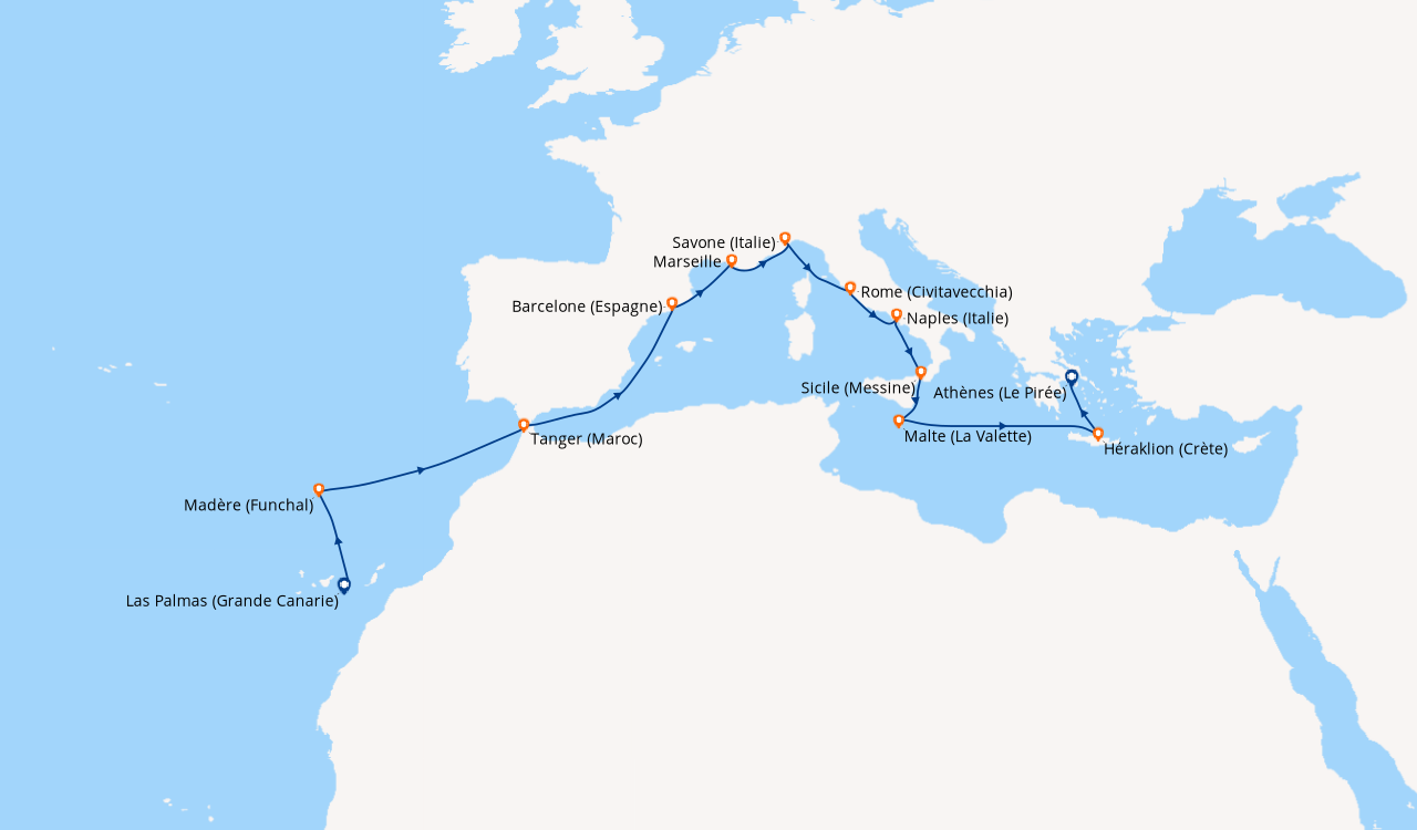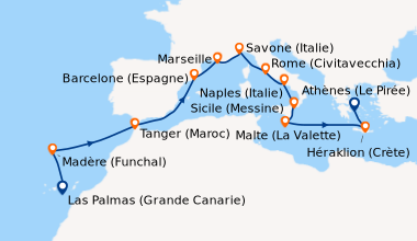 La med en Septembre au depart de Savone. Nous avons réservé cette croisière à la dernière minute pour fêter notre 48e anniversaire de mariage. Nous avons testé d’autres compagnies, mais c’est la première fois avec Costa. Pour l’occasion, nous avons choisi une cabine avec balcon située sur le pont N°11. À notre arrivée, les employés de la compagnie se chargent de nos bagages et garent notre véhicule. Après 40 minutes un personnel courtois et serviable, nous accueillent dans l’immense atrium puis nous rejoignons notre cabine par un des ascenseurs panoramiques. Nous avons pris un forfait boissons ‘tout compris’ qui nous a permis de consommer des boissons de toutes sortes. Il y a un grand choix de menus d’une qualité irréprochable servis par un personnel digne des plus grands établissements. Au théâtre Stardust, des chanteurs et danseurs exécutent des spectacles de première classe, sublimés par l’éclairage et le son dernière génération. De la pop au classique, il y en a pour tous les goûts, dans les lieux dédiés à la musique. Le salon de beauté, salon de coiffure et le spa sont tous à un prix raisonnable avec un personnel amical et serviable. Le service clients est réactif : Nous avons appelé pour un problème en cabine, quelques minutes après c’était réglé et un appel a suivi pour s’assurer que tout était OK. Si je ne devais retenir qu’une chose de cette croisière, outre les magnifiques paysages et le bateau tout confort, c’est l’extrême gentillesse de toutes les personnes qui travaillent à bord. Notre prochaine croisière sera certainement avec Costa.