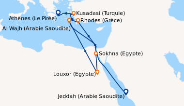 Si embarquement en Egypte, et si les hôtes ne sont pas en mesure de se procurer le visa à entrées multiples en ligne avant le départ, ils peuvent acquérir la première vignette de visa d'entrée directement à l'aéroport d'Hurghada dans les bureaux du gouvernement, en payant l'équivalent de USD 25,00. La deuxième vignette de visa d'entrée requise à la fin de la croisière, lorsque le navire retourne en Égypte, doit être achetée directement à bord au prix de 29 euros. Cette solution alternative n'est pas valable pour les nationalités nécessitant un visa pré-émis par une ambassade ou un consulat.