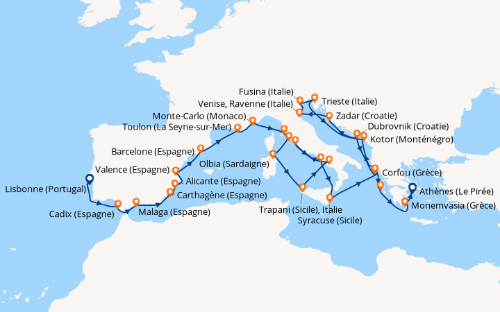 CROISIÈRE LISBONNE À LE PIRÉE, ATHÈNES