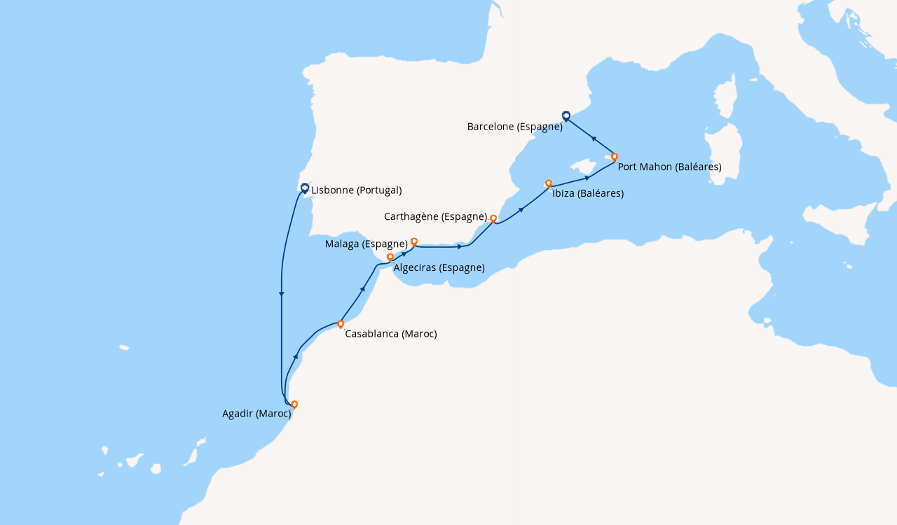 Croisière Croisières Méditerranée Croisières Lisbonne (portugal), En Mer, Agadir (maroc), ...