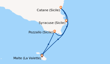 Visite de Malte et de la Sicile sur le navire faisant office "d'hotel-restaurant flottant", prestations meilleures que je l'aurais imaginées, bonne surprise. J’ai apprécié le code vestimentaire informel, l'ambiance est détendue. Il ya un pont-soleil où on peut bronzer ou lire avant que le bateau n'arrive au port, un bar juste à côté et deux jacuzzis, sympa.
