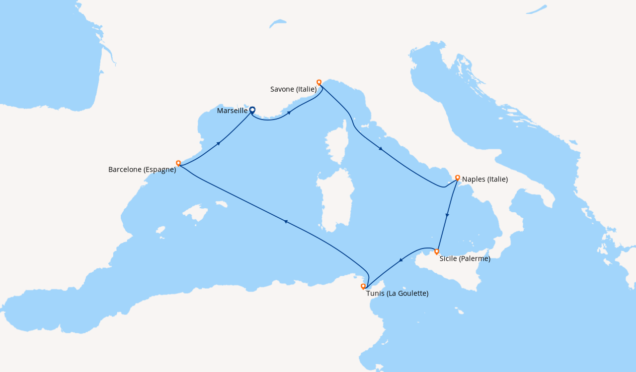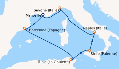 La med en Septembre au depart de Savone. Nous avons réservé cette croisière à la dernière minute pour fêter notre 48e anniversaire de mariage. Nous avons testé d’autres compagnies, mais c’est la première fois avec Costa. Pour l’occasion, nous avons choisi une cabine avec balcon située sur le pont N°11. À notre arrivée, les employés de la compagnie se chargent de nos bagages et garent notre véhicule. Après 40 minutes un personnel courtois et serviable, nous accueillent dans l’immense atrium puis nous rejoignons notre cabine par un des ascenseurs panoramiques. Nous avons pris un forfait boissons ‘tout compris’ qui nous a permis de consommer des boissons de toutes sortes. Il y a un grand choix de menus d’une qualité irréprochable servis par un personnel digne des plus grands établissements. Au théâtre Stardust, des chanteurs et danseurs exécutent des spectacles de première classe, sublimés par l’éclairage et le son dernière génération. De la pop au classique, il y en a pour tous les goûts, dans les lieux dédiés à la musique. Le salon de beauté, salon de coiffure et le spa sont tous à un prix raisonnable avec un personnel amical et serviable. Le service clients est réactif : Nous avons appelé pour un problème en cabine, quelques minutes après c’était réglé et un appel a suivi pour s’assurer que tout était OK. Si je ne devais retenir qu’une chose de cette croisière, outre les magnifiques paysages et le bateau tout confort, c’est l’extrême gentillesse de toutes les personnes qui travaillent à bord. Notre prochaine croisière sera certainement avec Costa.