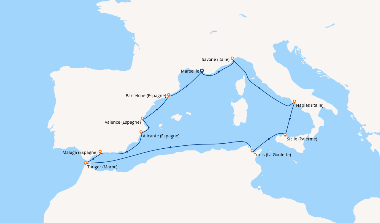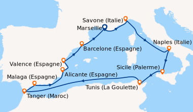 La med en Septembre au depart de Savone. Nous avons réservé cette croisière à la dernière minute pour fêter notre 48e anniversaire de mariage. Nous avons testé d’autres compagnies, mais c’est la première fois avec Costa. Pour l’occasion, nous avons choisi une cabine avec balcon située sur le pont N°11. À notre arrivée, les employés de la compagnie se chargent de nos bagages et garent notre véhicule. Après 40 minutes un personnel courtois et serviable, nous accueillent dans l’immense atrium puis nous rejoignons notre cabine par un des ascenseurs panoramiques. Nous avons pris un forfait boissons ‘tout compris’ qui nous a permis de consommer des boissons de toutes sortes. Il y a un grand choix de menus d’une qualité irréprochable servis par un personnel digne des plus grands établissements. Au théâtre Stardust, des chanteurs et danseurs exécutent des spectacles de première classe, sublimés par l’éclairage et le son dernière génération. De la pop au classique, il y en a pour tous les goûts, dans les lieux dédiés à la musique. Le salon de beauté, salon de coiffure et le spa sont tous à un prix raisonnable avec un personnel amical et serviable. Le service clients est réactif : Nous avons appelé pour un problème en cabine, quelques minutes après c’était réglé et un appel a suivi pour s’assurer que tout était OK. Si je ne devais retenir qu’une chose de cette croisière, outre les magnifiques paysages et le bateau tout confort, c’est l’extrême gentillesse de toutes les personnes qui travaillent à bord. Notre prochaine croisière sera certainement avec Costa.