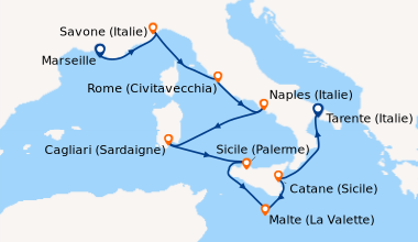 C’était ma première croisière, je ne savais pas vraiment si j'allais aimer. Le gigantisme, 4000 passagers.. l'embarquement a été un peu long mais je suppose que 1h est un délai d'attente normal ? Lorsque le temps est au beau fixe, on peut profiter d’une piscine extérieure avec toboggan, jacuzzis, c'est sympa. ma cabine interieure est restée propre, bon point même si je ne suis pas du genre à salir l'endroit où je me trouve. Je me suis fait quelques connaissances, pour la plupart italiens. Je mets un 5/10