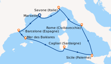 Pour notre 1 ère croisière nous avons passé une semaine extraordinaire a refaire sans problème. Le petit bémol est que pour notre croisière pour l escale au Vatican nous n avons pas pu le visiter car tout était fermé cause arrivée du Pape. Et toute les explications sur le bateau le français était très très rare donc pas évident de savoir se qu ils y avait sur le bateau