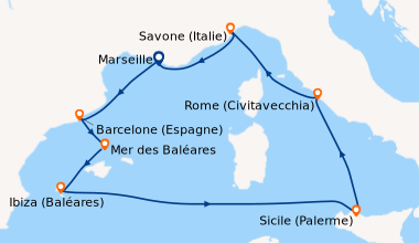 Pour notre 1 ère croisière nous avons passé une semaine extraordinaire a refaire sans problème. Le petit bémol est que pour notre croisière pour l escale au Vatican nous n avons pas pu le visiter car tout était fermé cause arrivée du Pape. Et toute les explications sur le bateau le français était très très rare donc pas évident de savoir se qu ils y avait sur le bateau