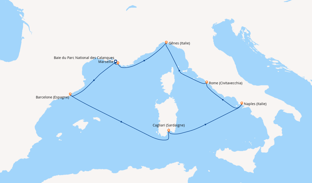 Pour notre 1 ère croisière nous avons passé une semaine extraordinaire a refaire sans problème. Le petit bémol est que pour notre croisière pour l escale au Vatican nous n avons pas pu le visiter car tout était fermé cause arrivée du Pape. Et toute les explications sur le bateau le français était très très rare donc pas évident de savoir se qu ils y avait sur le bateau