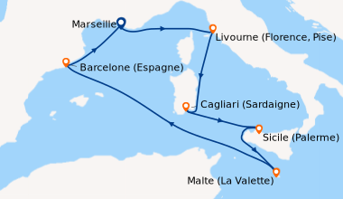 Croisière en avril’ à destination de la Méditerranée, embarquement à Marseille C’est notre première croisière avec ma femme et mes deux enfants. Avant de partir, j’ai lu des bonnes et moins bonnes critiques sur le navire, mais après notre croisière je peux affirmer que le bateau est superbe, les équipements excellents, les animations sympas, la restauration variée, le personnel chaleureux et amical. L’embarquement est rapide, sans faille. La chambre (avec balcon) est spacieuse, claire, luxueuse, avec de grands lits confortables. Nous avons pris le forfait boissons ‘tout compris’ : 480 € pour 4 personnes/ la semaine ; Il est très économique car il comprend tous les cocktails, spiritueux, vins et bières, les eaux, crèmes glacées, etc. Si vous ne choisissez pas cette option, il faut savoir que les prix sont un peu chers : cocktail 8€, pour une bouteille de bière 5,50€, pour une crème glacée 5 €. Nous avons choisi MSC croisieres parce que les enfants de moins de 12 ans voyagent gratuitement (sauf taxes portuaires bar etc.) Sans aucun frais cachés. Cela signifie, un prix abordable pour une famille de quatre personnes. Les enfants adore l’ambiance du navire, les liens d’amitiés noués avec les passagers de leur âge et les équipements : les piscines, les clubs, etc….. La croisière réunie de nombreuses familles avec enfants, des couples, des groupes, et de nombreuses nationalités dont la moyenne d’âge est assez jeune. Cette croisière sous le signe de la découverte, l’amitié, la joie de vivre, nous donne la certitude qu’il ne faut pas attendre trop longtemps pour y retourner.