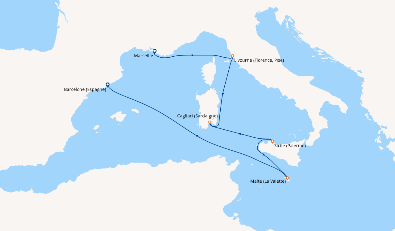 Croisière en avril’ à destination de la Méditerranée, embarquement à Marseille C’est notre première croisière avec ma femme et mes deux enfants. Avant de partir, j’ai lu des bonnes et moins bonnes critiques sur le navire, mais après notre croisière je peux affirmer que le bateau est superbe, les équipements excellents, les animations sympas, la restauration variée, le personnel chaleureux et amical. L’embarquement est rapide, sans faille. La chambre (avec balcon) est spacieuse, claire, luxueuse, avec de grands lits confortables. Nous avons pris le forfait boissons ‘tout compris’ : 480 € pour 4 personnes/ la semaine ; Il est très économique car il comprend tous les cocktails, spiritueux, vins et bières, les eaux, crèmes glacées, etc. Si vous ne choisissez pas cette option, il faut savoir que les prix sont un peu chers : cocktail 8€, pour une bouteille de bière 5,50€, pour une crème glacée 5 €. Nous avons choisi MSC croisieres parce que les enfants de moins de 12 ans voyagent gratuitement (sauf taxes portuaires bar etc.) Sans aucun frais cachés. Cela signifie, un prix abordable pour une famille de quatre personnes. Les enfants adore l’ambiance du navire, les liens d’amitiés noués avec les passagers de leur âge et les équipements : les piscines, les clubs, etc….. La croisière réunie de nombreuses familles avec enfants, des couples, des groupes, et de nombreuses nationalités dont la moyenne d’âge est assez jeune. Cette croisière sous le signe de la découverte, l’amitié, la joie de vivre, nous donne la certitude qu’il ne faut pas attendre trop longtemps pour y retourner.