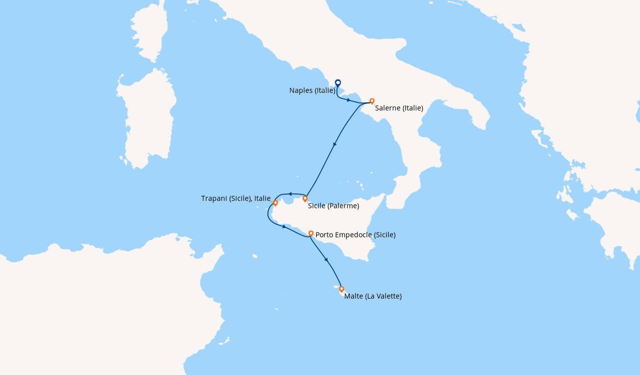 Visite de Malte et de la Sicile sur le navire faisant office "d'hotel-restaurant flottant", prestations meilleures que je l'aurais imaginées, bonne surprise. J’ai apprécié le code vestimentaire informel, l'ambiance est détendue. Il ya un pont-soleil où on peut bronzer ou lire avant que le bateau n'arrive au port, un bar juste à côté et deux jacuzzis, sympa.