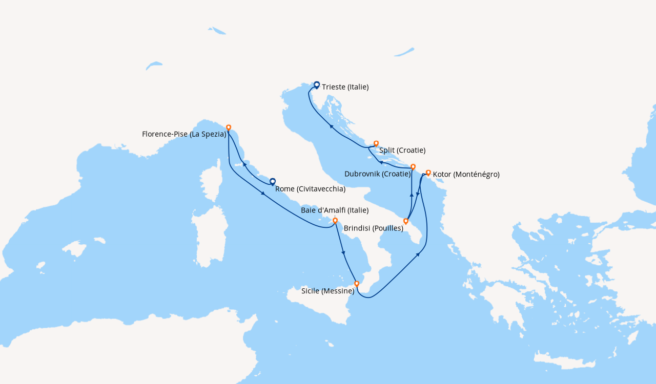 Croisière en Septembre, de Venise à L’Adriatique. Le bateau a une belle ligne. La cabine pour 4 personnes est spacieuse, fonctionnelle, bien équipée. La piscine intérieure est un lieu agréable avec son salon confortable pour la détente. La restauration est très correcte, le forfait ‘boissons tout inclus’ est vraiment économique lorsqu’on part en famille. Le personnel est gracieux, sympathique, serviable. L’équipe est très pointue sur la sécurité. La maitrise de l’anglais est impérative, toutes les informations, animations sont en anglais, sans traduction, notamment pour les exercices de sauvetage. Les spectacles sont de très grande qualité, divertissants, même si nous n’avons pas toujours compris. Nous n’avons pas aimé, le montant des pourboires, que nous trouvons prohibitifs (12euros par jour et par personne). Une croisière vraiment agréable. Noël