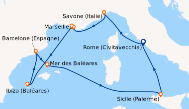 Pour notre 1 ère croisière nous avons passé une semaine extraordinaire a refaire sans problème. Le petit bémol est que pour notre croisière pour l escale au Vatican nous n avons pas pu le visiter car tout était fermé cause arrivée du Pape. Et toute les explications sur le bateau le français était très très rare donc pas évident de savoir se qu ils y avait sur le bateau