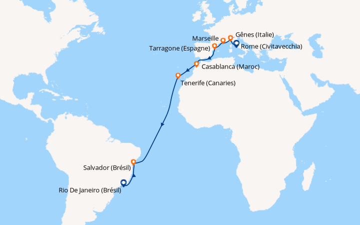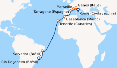 Croisière en Septembre à destination la Méditerranée, embarquement à Gênes. C’est notre première croisière, donc nous ne savions vraiment pas à quoi nous attendre après avoir lu certains commentaires. La cabine est agréable, spacieuse, bien équipée. Nous avons pris tous nos petits déjeuners et déjeuners au restaurant. C’est super de se retrouver avec des compagnons venus de divers horizons. Les tables sont devenus multiculturels ! Nous sommes allés deux fois au buffet, le service est excellent, les serveurs attentionnés. Le forfait ‘boissons tout compris' est bien utile car il couvre les cocktails, cafés, boissons non alcoolisées, eau, café etc…. Nous avons loué une excursion à terre pour la visite de Rome. Comme nous n'avons pas tenu compte du temps qu’il faut pour rejoindre le port à la ville, nous n’avons pas pu faire la totalité de la visite. Pour Palerme et Tunis, nous avons réservé avec la compagnie, aucun problème, bien que Tunis soit une étape à surveiller car il y a de nombreux filous.