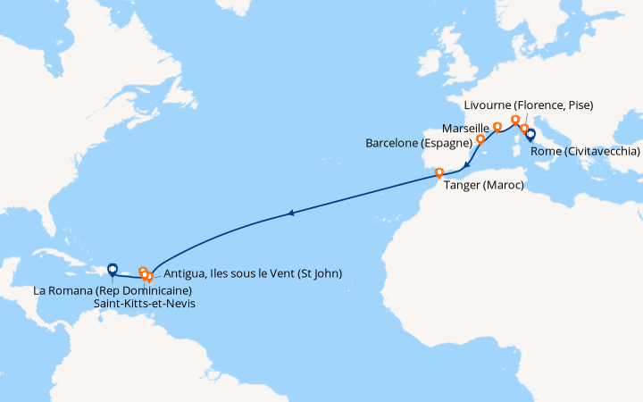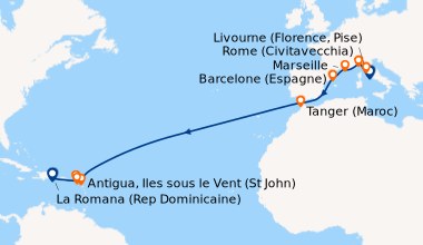Croisiere en Septembre à destination de la méditerranée, embarquement à Gêne. A mon arrivée au point d’embarquement, je découvre un navire élégant, de taille moyenne. Une fois à bord, l’intérieur affiche un style d’inspiration Art Déco avec des décors de formes géométriques et des couleurs attrayantes. Ma cabine, est équipée de tout le confort moderne, petite, bien agencée, avec des couleurs vitaminées. Grâce à l’équipage, au personnel, à l’équipe d’animations formidables, mon séjour prend rapidement les couleurs de la bonhommie italienne, marqué chaque jour par la bonne compagnie, la bonne cuisine avec son festival de menus rafinés, ses diverses animations, du lever au coucher. Juste un reproche concernant la loi anti-tabac qui prévoit des zones fumeurs parmi des zones non-fumeurs alors que des lieux spécifiques isolés seraient moins dérangeants.