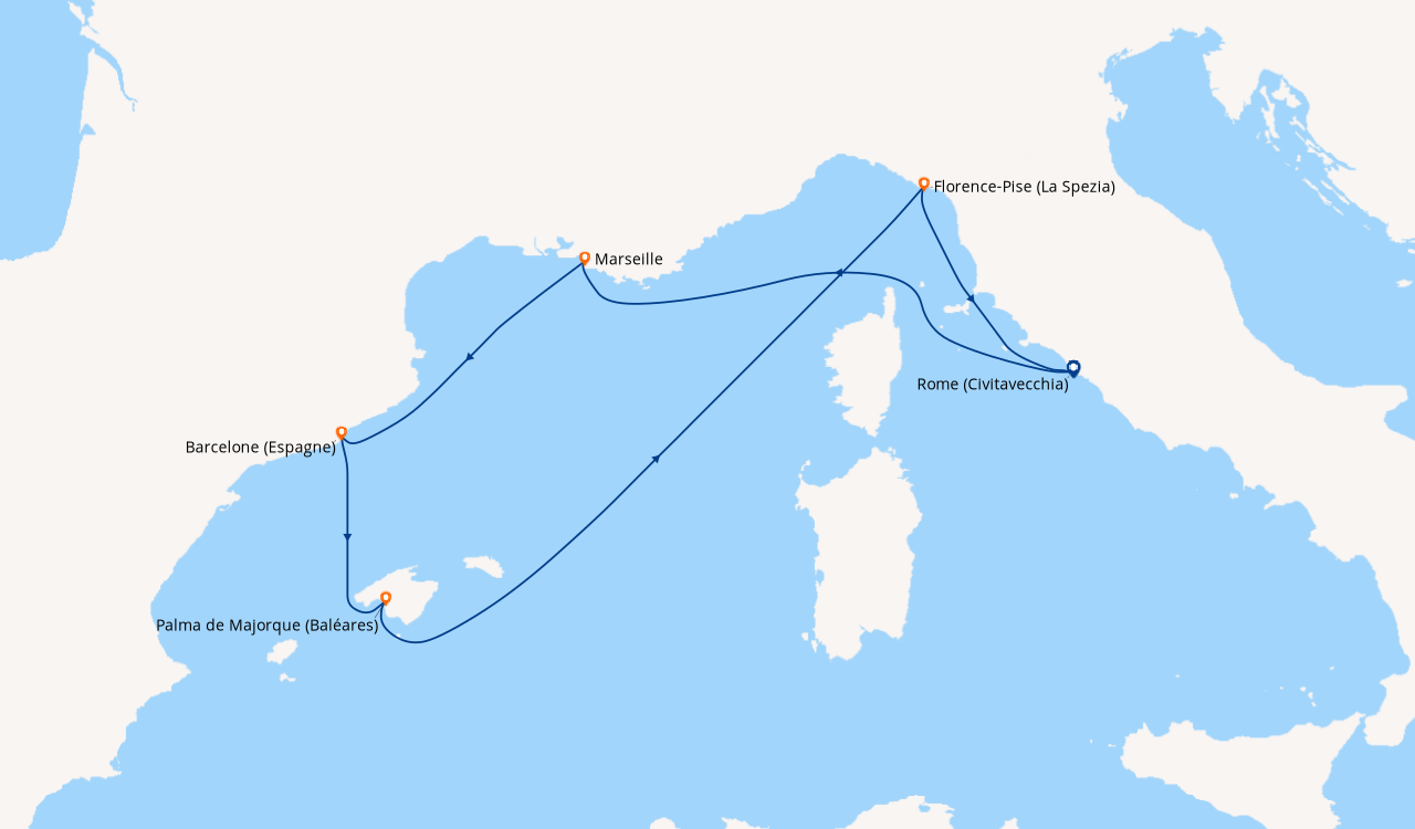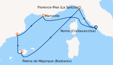 CROISIÈRE ROME (CIVITAVECCHIA), EN MER, MARSEILLE, BARC...