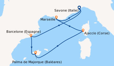 La mediterranée en juillet de barcelone Nous avons choisi Costa en raison de son prix abordable et de sa destination ensoleillée. L’embarquement à Barcelone se fait en un temps record (15 minutes). La cabine extérieure que nous avons choisie est grande et bien aménagée. Nous étions quatre, alors par économie, nous avons opté pour le forfait boissons, au final, nous avons bien fait.Le navire est spacieux et sa décoration moderne. Si vous souhaitez du homard, ne cherchez pas, Costa n’offre pas une restauration gastronomique, mais c’est acceptable, le service est rapide, efficace. Nous avons diné au MDR tous les soirs et au buffet sur les ponts 9/10 le reste du temps. Au niveau de l'animation, les spectacles sont de bons niveaux au theatre. Pour de moments de detente, il y a de confortables fauteuils au piano bar avec de la douce musique d’ambiance.Nous avons fait une excursion avec la compagnie mais nous l’avons trouvée chère. Quelques passagers nous ont confié qu'ils avaient fait des économies en prenant leurs excursions à terre. Cette croisière est recommandée pour les familles à tous points de vue