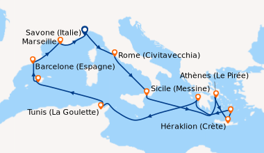 La mediterranée en juillet de barcelone Nous avons choisi Costa en raison de son prix abordable et de sa destination ensoleillée. L’embarquement à Barcelone se fait en un temps record (15 minutes). La cabine extérieure que nous avons choisie est grande et bien aménagée. Nous étions quatre, alors par économie, nous avons opté pour le forfait boissons, au final, nous avons bien fait.Le navire est spacieux et sa décoration moderne. Si vous souhaitez du homard, ne cherchez pas, Costa n’offre pas une restauration gastronomique, mais c’est acceptable, le service est rapide, efficace. Nous avons diné au MDR tous les soirs et au buffet sur les ponts 9/10 le reste du temps. Au niveau de l'animation, les spectacles sont de bons niveaux au theatre. Pour de moments de detente, il y a de confortables fauteuils au piano bar avec de la douce musique d’ambiance.Nous avons fait une excursion avec la compagnie mais nous l’avons trouvée chère. Quelques passagers nous ont confié qu'ils avaient fait des économies en prenant leurs excursions à terre. Cette croisière est recommandée pour les familles à tous points de vue